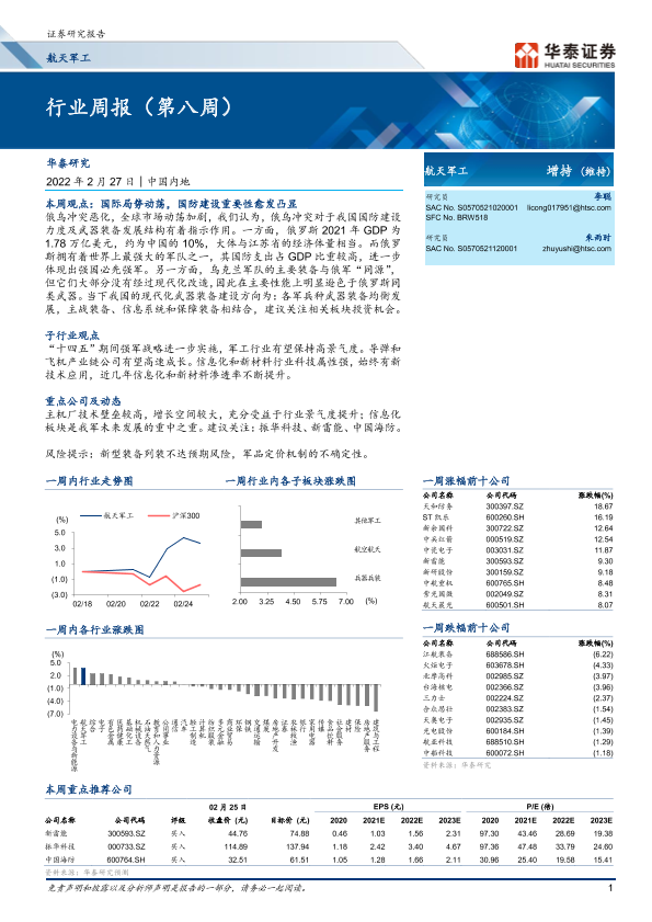【华泰证券】【20220227】20220227-华泰证券-航天军工行业周报(第八周)-13页
