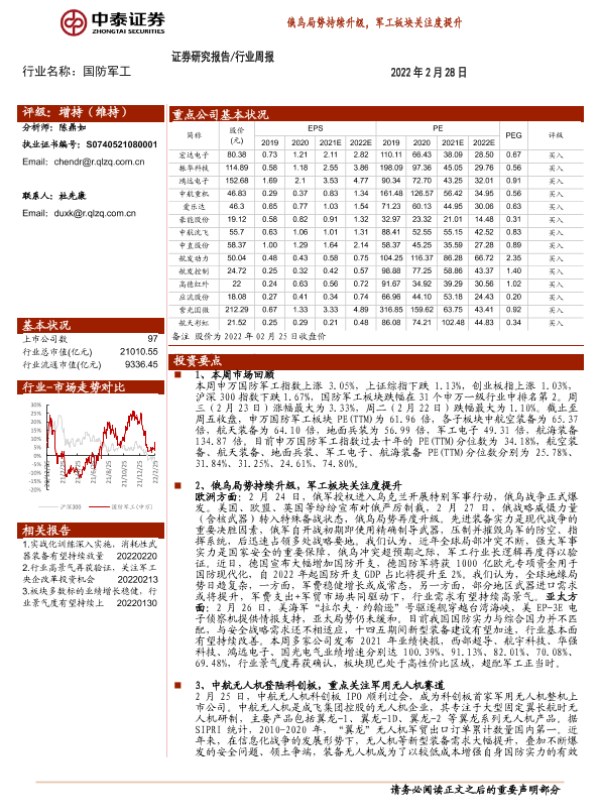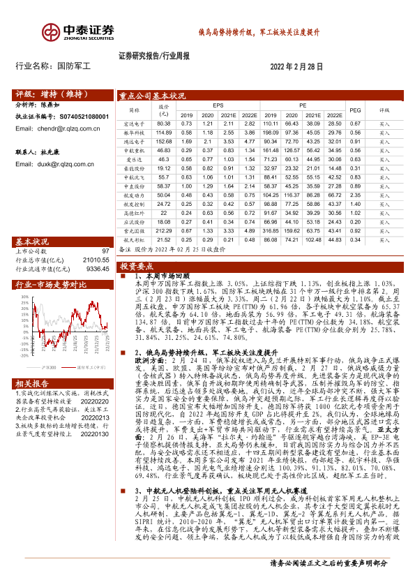 【中泰证券】【20220228】20220228-中泰证券-国防军工行业周报:俄乌局势持续升级,军工板块关注度提升-21页