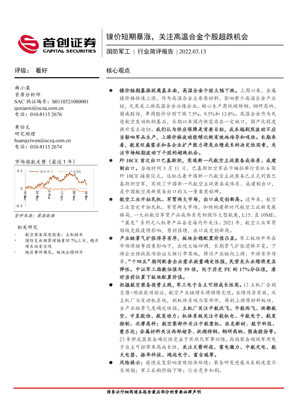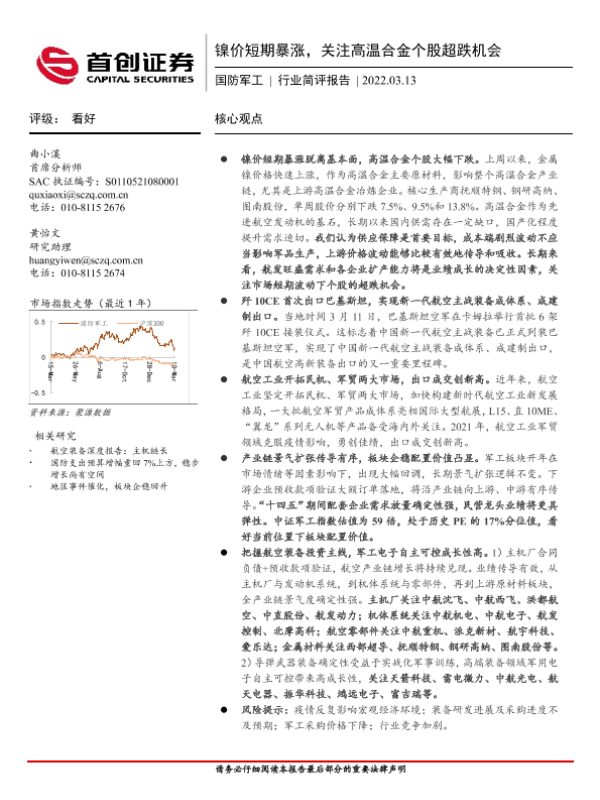 【首创证券】【20220313】国防军工行业简评报告:镍价短期暴涨,关注高温合金个股超跌机会-6页