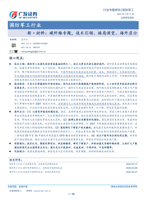 【广发证券】【20220317】国防军工行业:新·材料:碳纤维专题,技术引领、格局演变、海外启示-66页