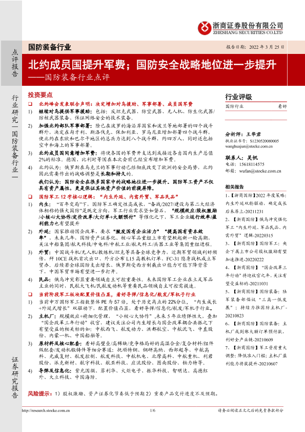 【浙商证券】【20220325】20220325-浙商证券-国防装备行业点评:北约成员国提升军费;国防安全战略地位进一步提升-6页