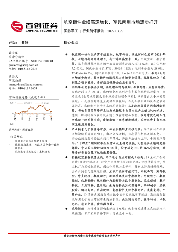 【首创证券】【20220327】20220327-首创证券-国防军工行业简评报告:航空锻件业绩高速增长,军民两用市场逐步打开-6页
