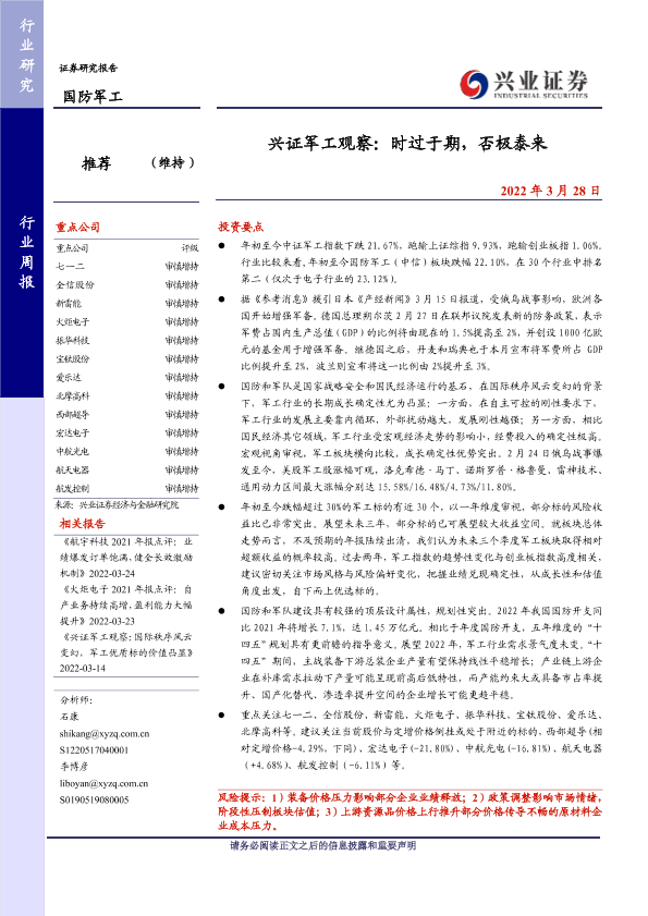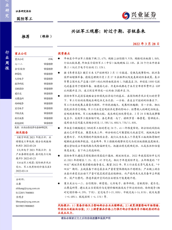 【兴业证券】【20220328】兴证军工观察:时过于期,否极泰来-22页