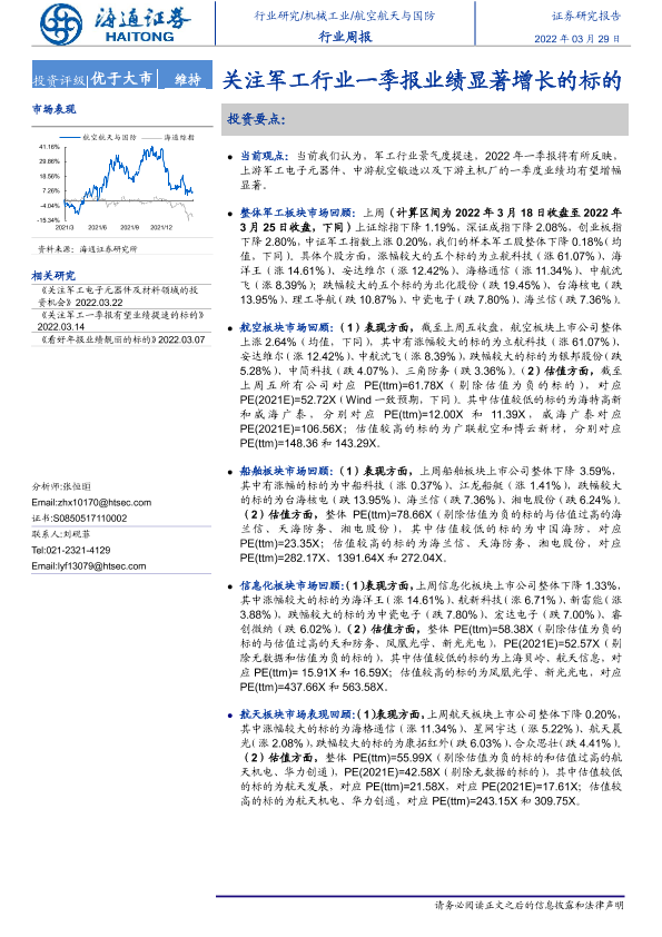 【海通证券】【20220329】20220329-海通证券-航空航天与国防行业周报:关注军工行业一季报业绩显著增长的标的-6页