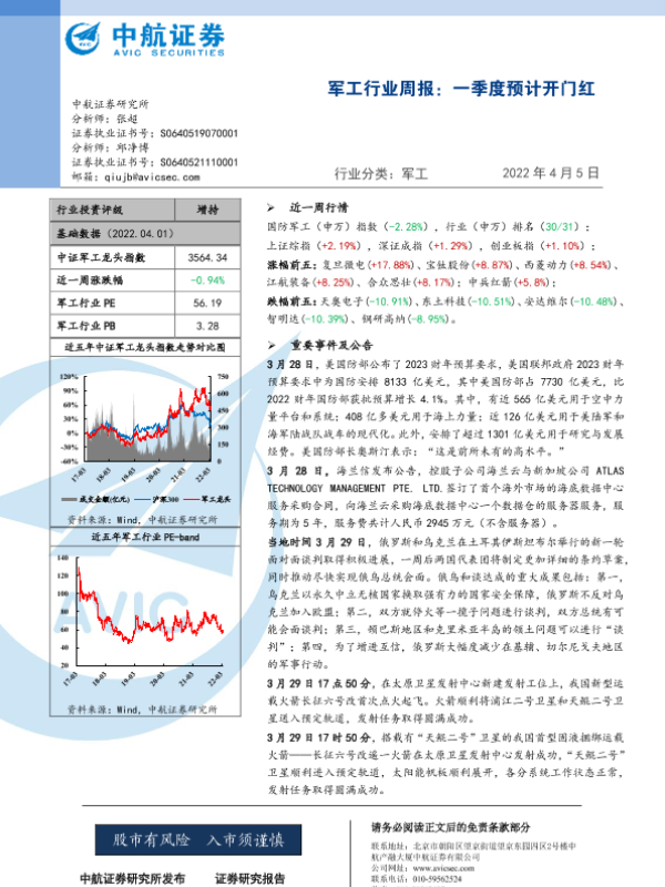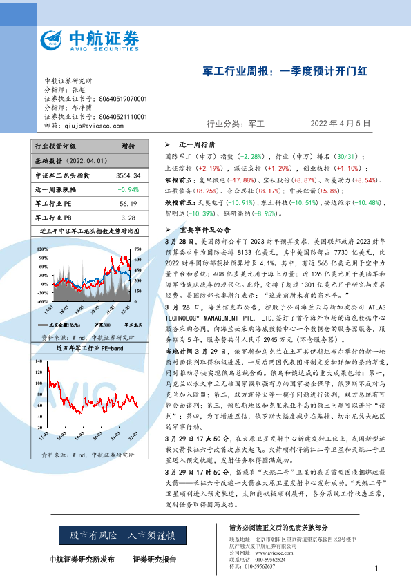 【中航证券】【20220405】20220405-中航证券-军工行业周报:一季度预计开门红-24页