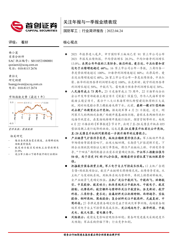 【首创证券】【20220424】20220424-首创证券-国防军工行业简评报告:关注年报与一季报业绩表现-7页