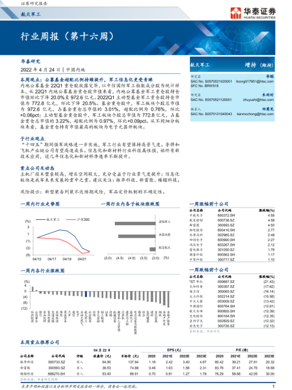【华泰证券】【20220424】20220424-华泰证券-航天军工行业周报(第十六周)-18页