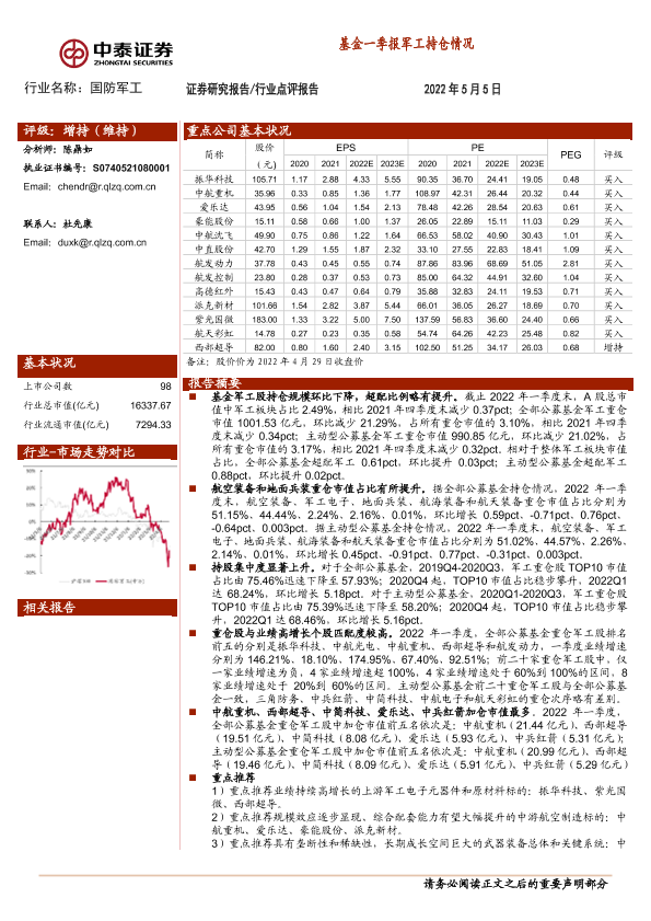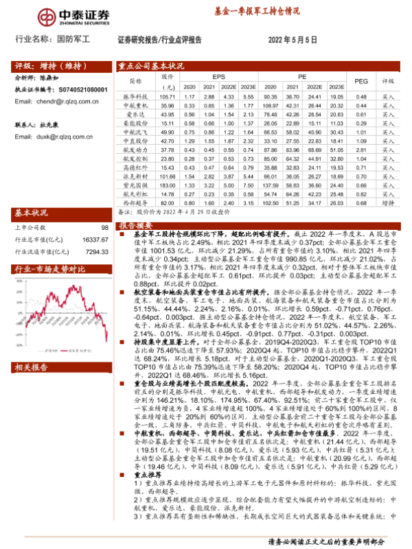 【中泰证券】【20220505】20220505-中泰证券-国防军工:基金一季报军工持仓情况-17页