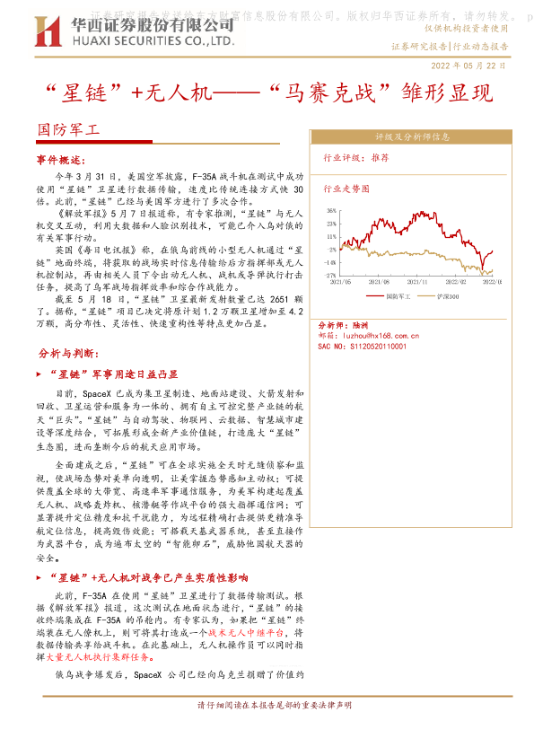 【华西证券】【20220522】国防军工:“星链”+无人机——“马赛克战”雏形显现-15页