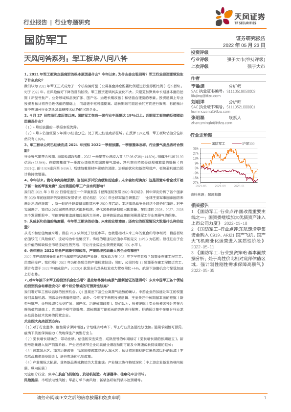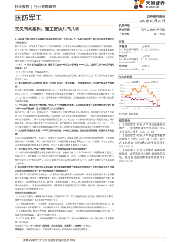 【天风证券】【20220523】国防军工行业专题研究:天风问答系列:军工板块八问八答-7页