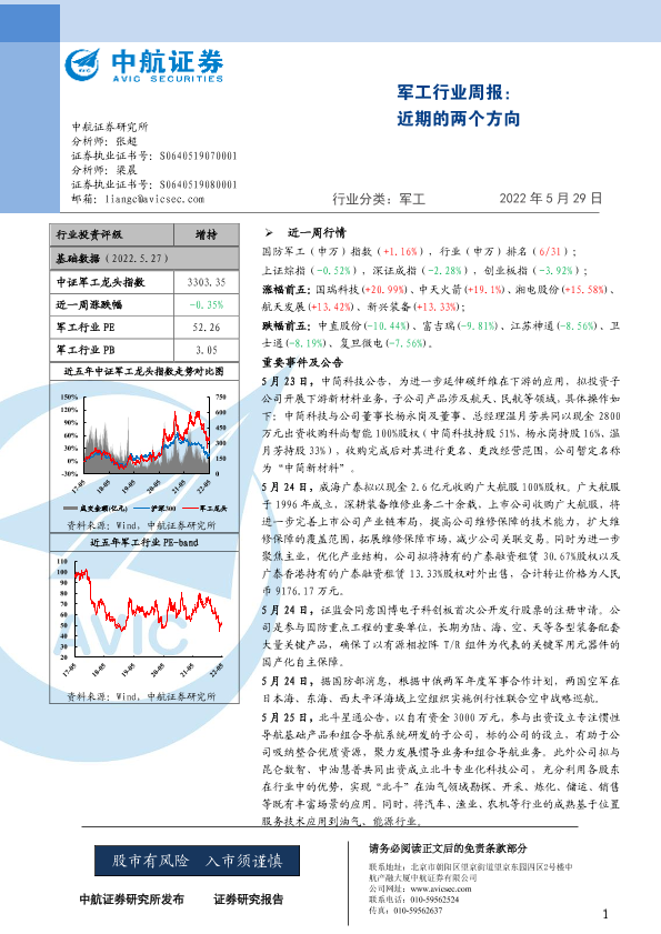 【中航证券】【20220529】20220529-中航证券-军工行业周报:近期的两个方向-23页