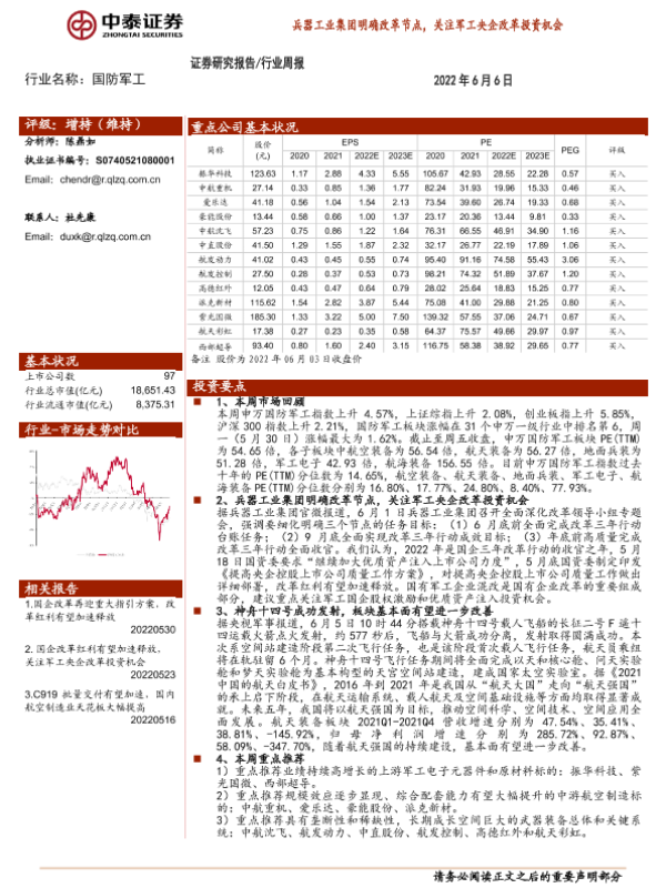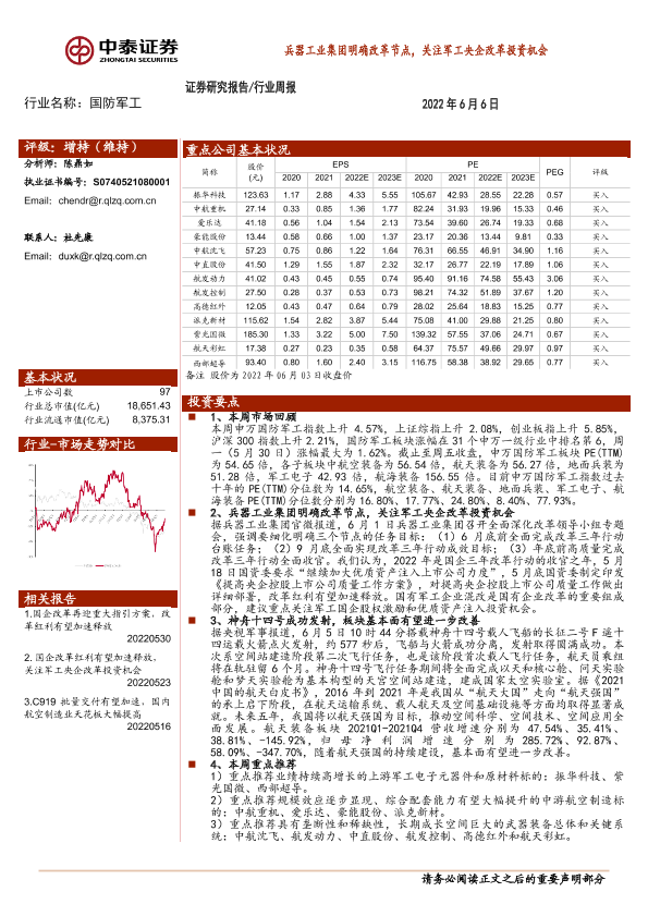 【中泰证券】【20220606】20220606-中泰证券-国防军工行业周报:兵器工业集团明确改革节点,关注军工央企改革投资机会-17页