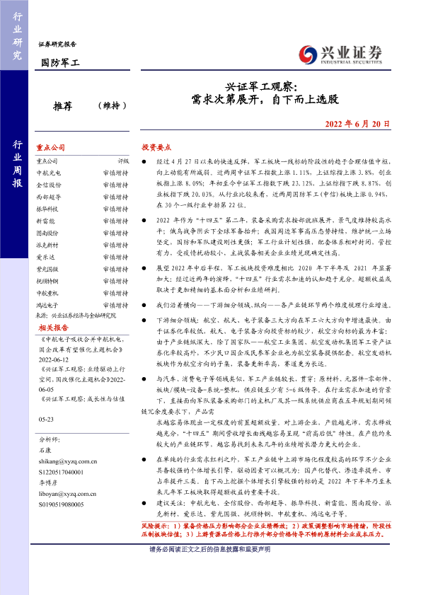 【兴业证券】【20220620】兴证军工观察:需求次第展开,自下而上选股-17页