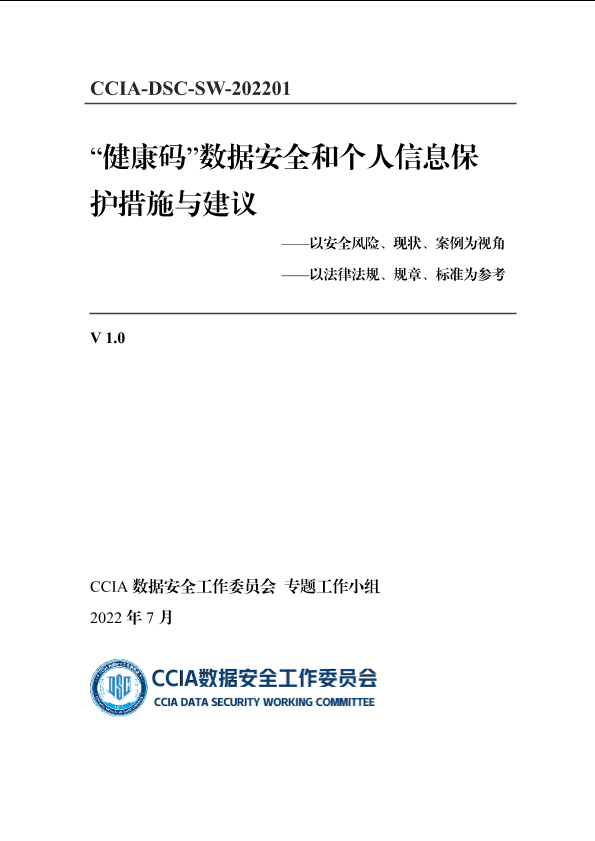 【中国网络安全产业联盟(CCIA)数据安全工作委员会】【202207】“健康码”数据安全和个人信息保护措施与建议-38页