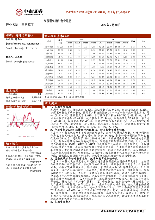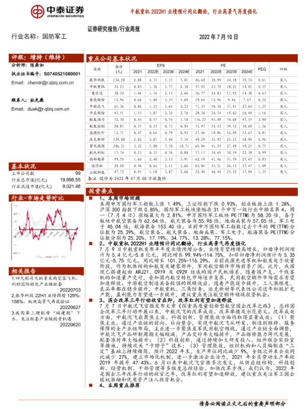 【中泰证券】【20220710】20220710-中泰证券-国防军工行业周报:中航重机2022H1业绩预计同比翻倍,行业高景气再度强化-17页