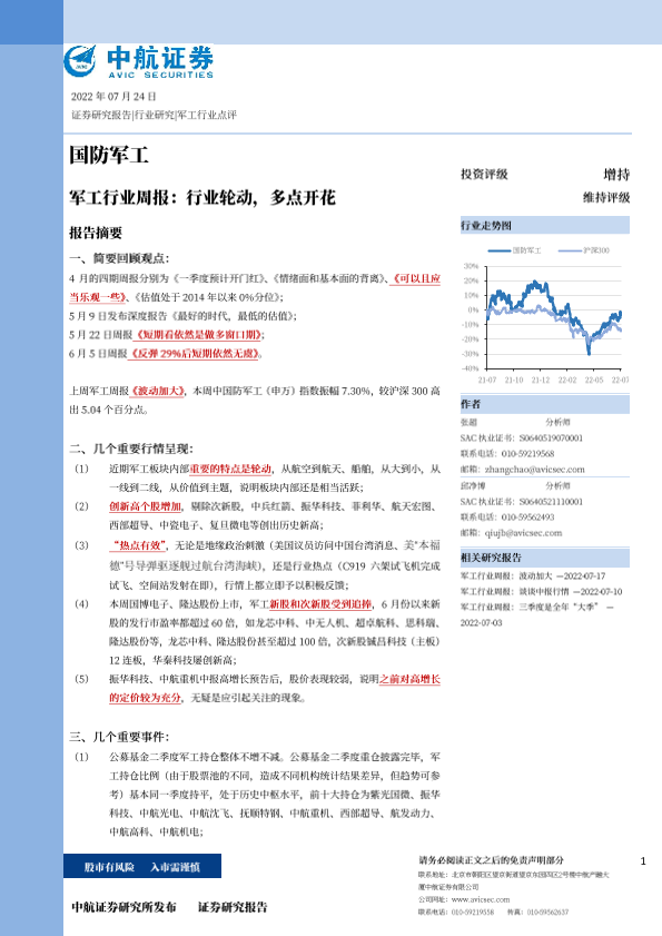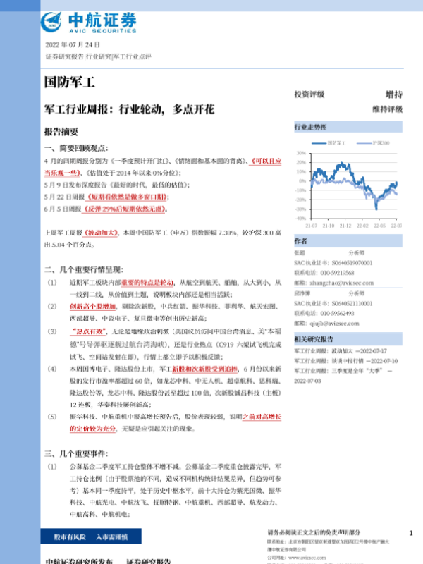 【中航证券】【20220724】军工行业周报:行业轮动,多点开花-23页