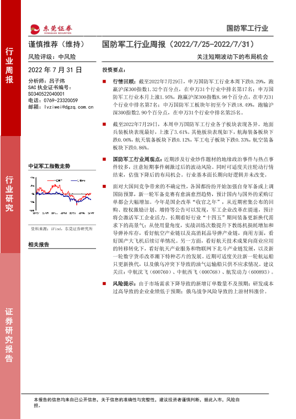 【东莞证券】【20220731】20220731-东莞证券-国防军工行业周报:关注短期波动下的布局机会-10页