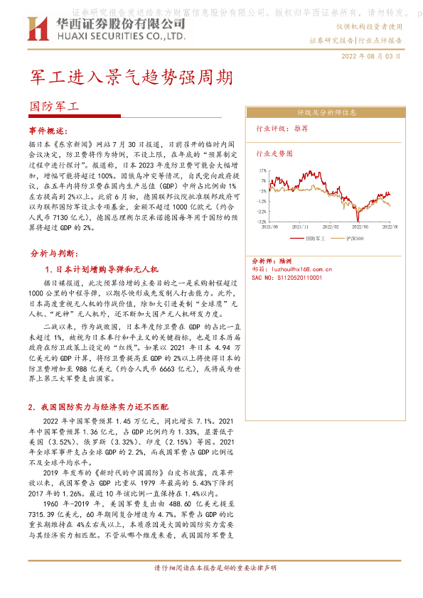 【华西证券】【20220803】国防军工行业点评报告:军工进入景气趋势强周期-5页