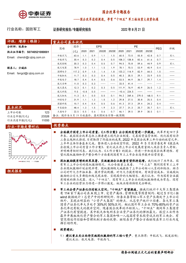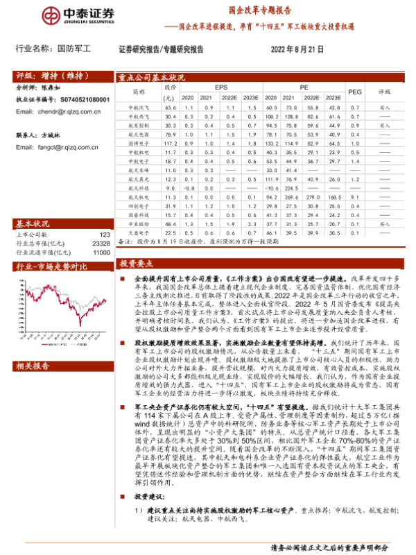【中泰证券】【20220821】20220821-中泰证券-国防军工国企改革专题报告:国企改革进程提速,孕育“十四五”军工板块重大投资机遇-21页
