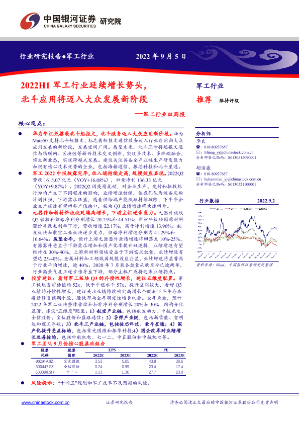 【银河证券】【20220905】2022H1军工行业延续增长势头,北斗应用将迈入大众发展新阶段-11页