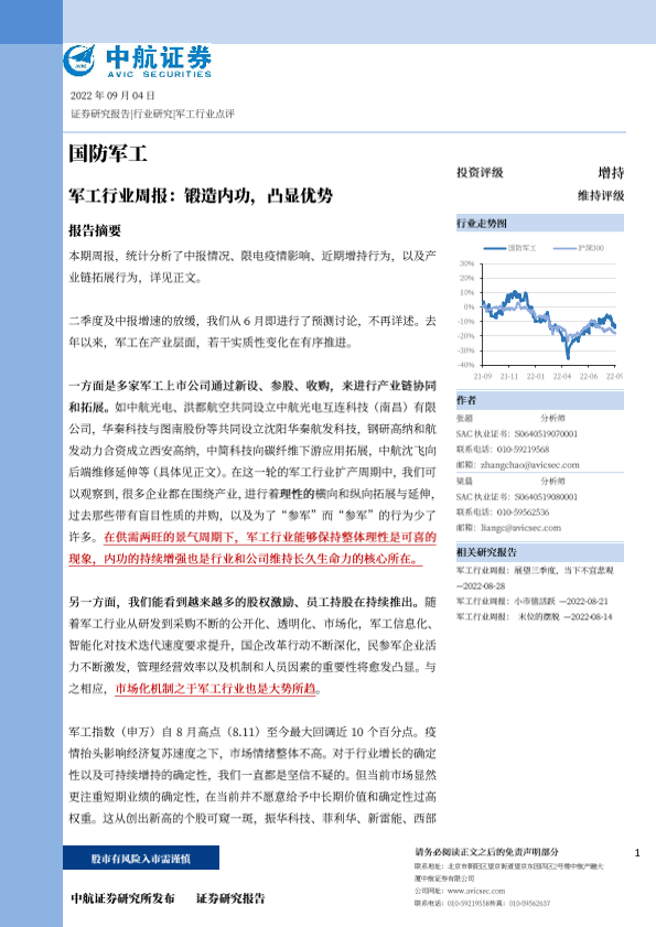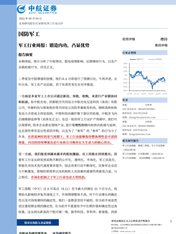【中航证券】【20220904】20220904-中航证券-军工行业周报:锻造内功,凸显优势-25页