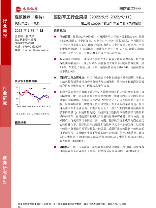 【东莞证券】【20220911】国防军工行业周报:第二架AG600M“鲲龙”完成了首次飞行试验-11页