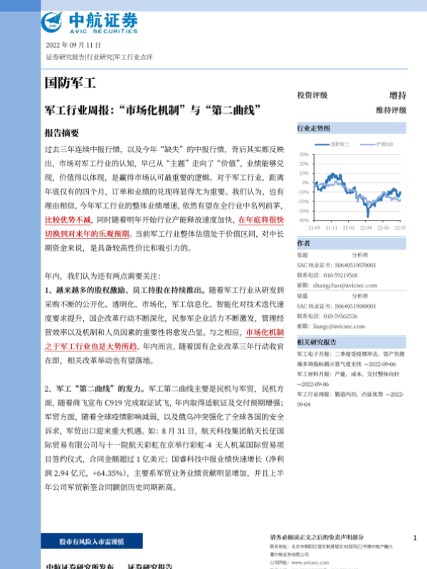 【中航证券】【20220911】军工行业周报 '市场化机制'与'第二曲线'-26页