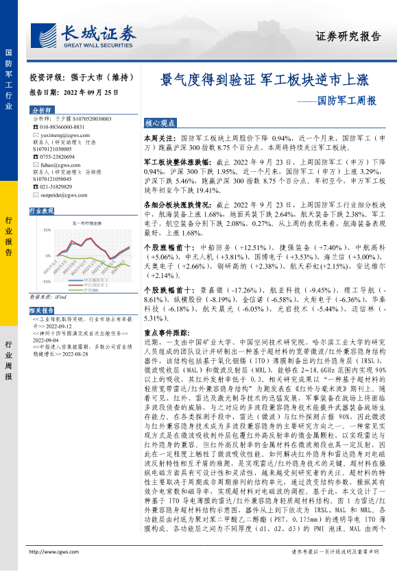 【长城证券】【20220925】20220925-长城证券-国防军工周报:景气度得到验证 军工板块逆市上涨-13页