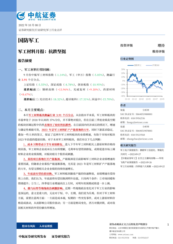 【中航证券】【20221008】20221008-中航证券-军工材料月报:抗跌坚挺-14页