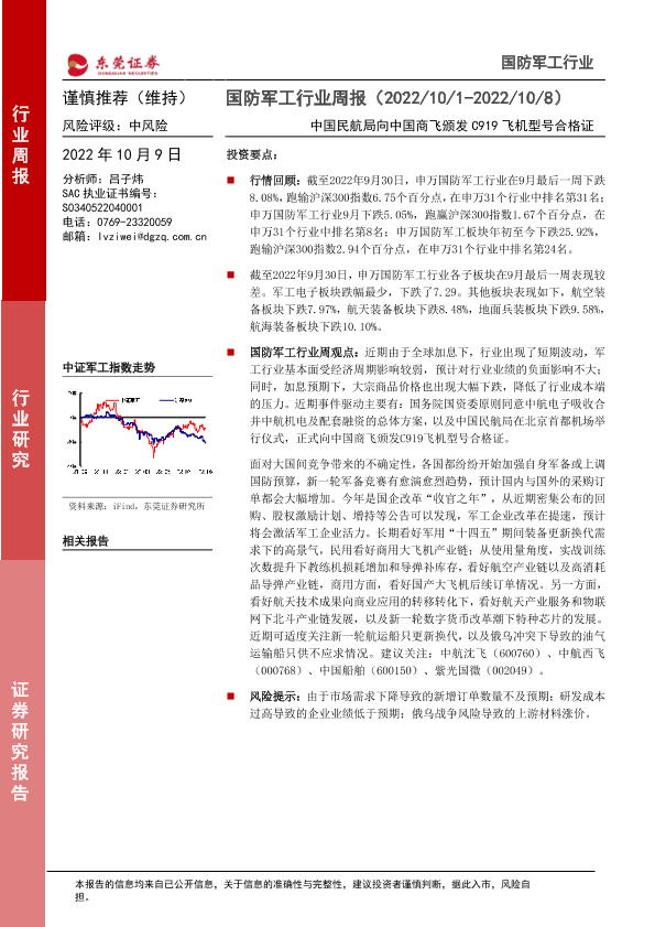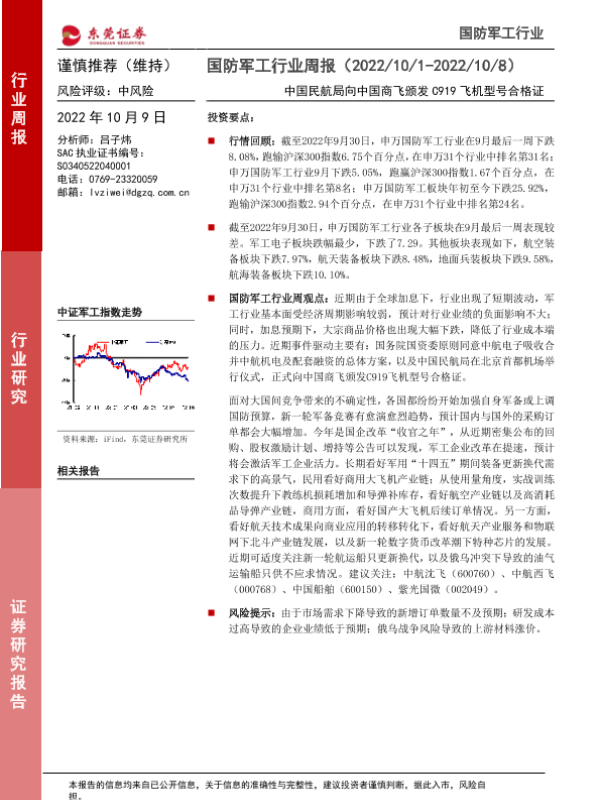 【东莞证券】【20221009】国防军工行业周报:中国民航局向中国商飞颁发C919飞机型号合格证-11页