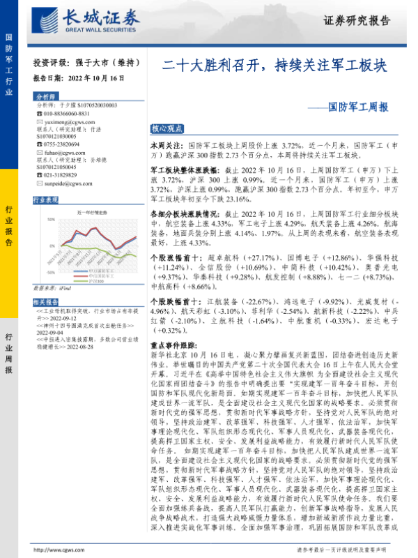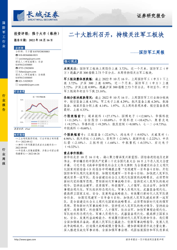 【长城证券】【20221016】20221016-长城证券-国防军工周报:二十大胜利召开,持续关注军工板块-14页