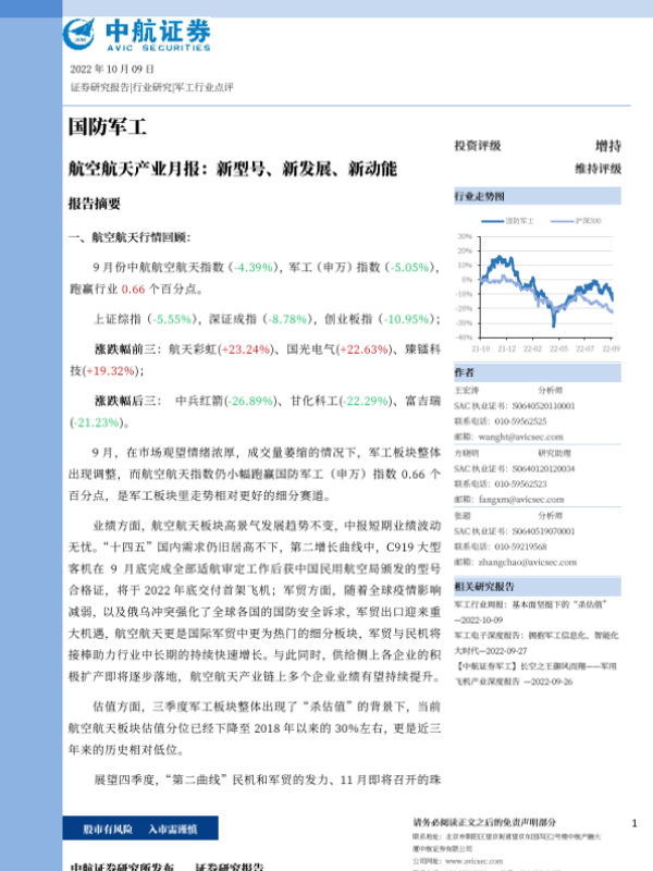 【中航证券】【20221009】航空航天产业月报:新型号、新发展、新动能-34页