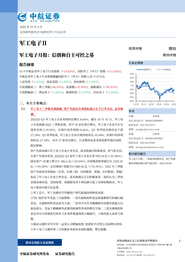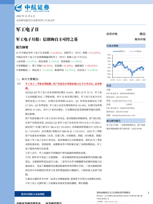 【中航证券】【20221106】军工电子月报 信创和自主可控之基-22页