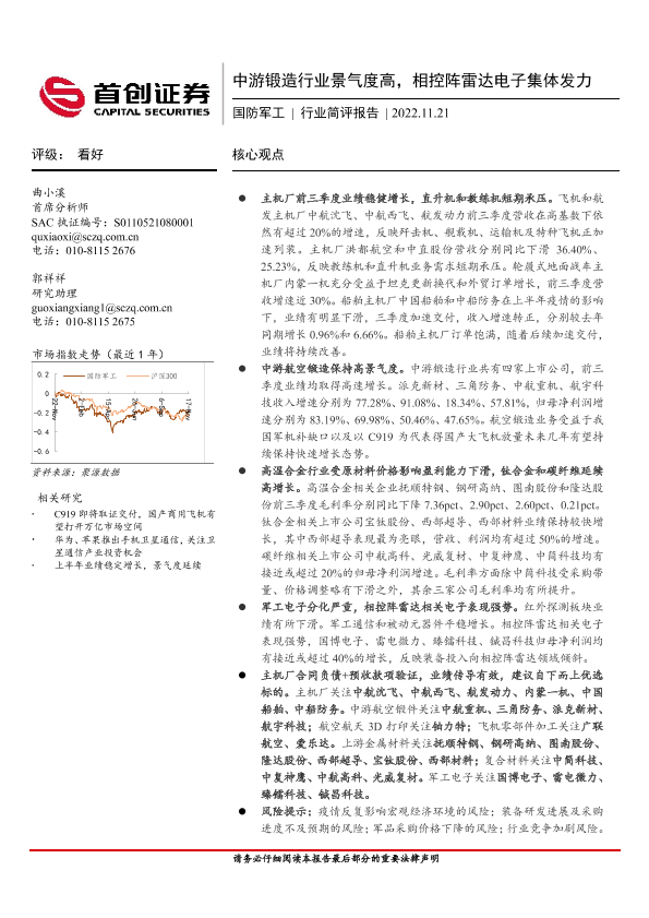 【首创证券】【20221121】20221121-首创证券-国防军工行业简评报告:中游锻造行业景气度高,相控阵雷达电子集体发力-19页