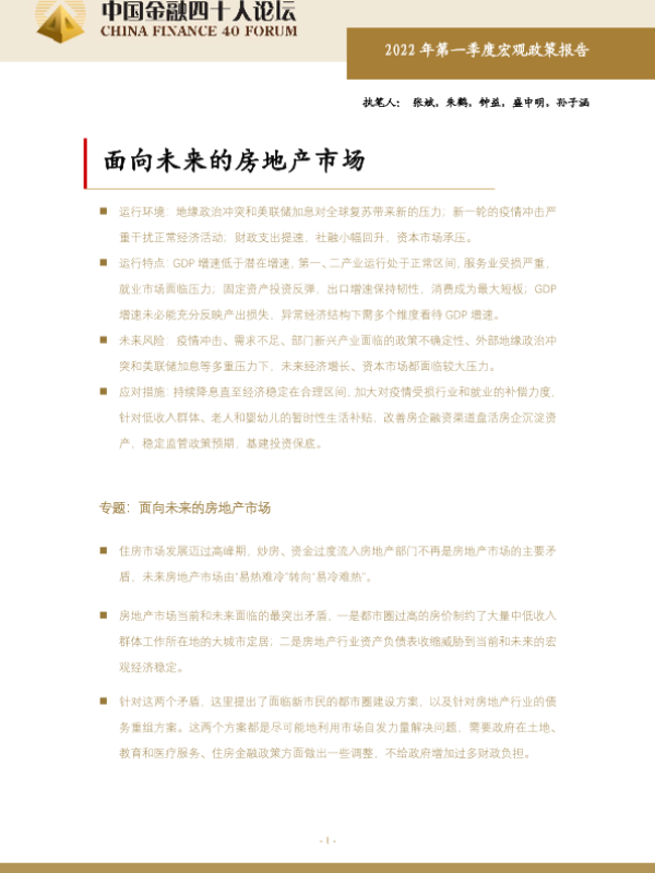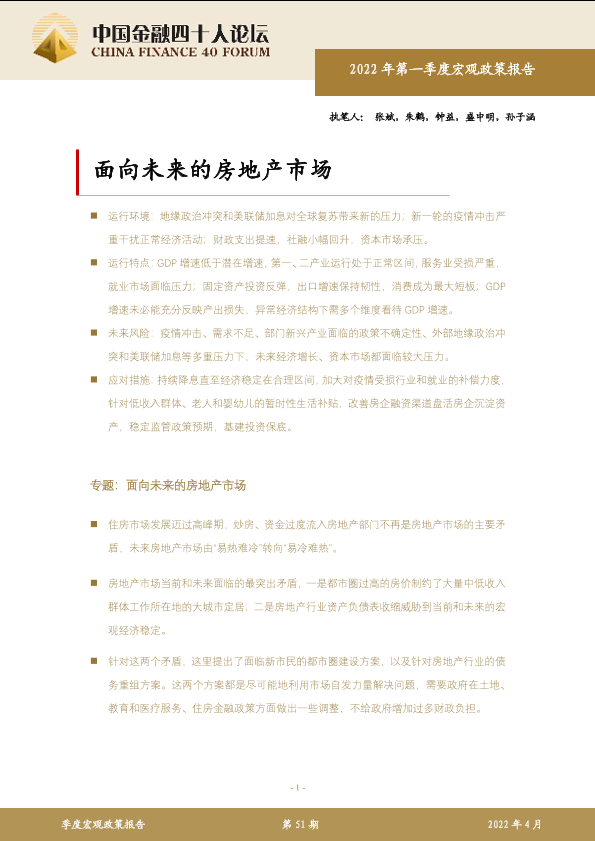 【中国金融四十人论坛】【202204】2022年第一季度宏观政策报告-53页