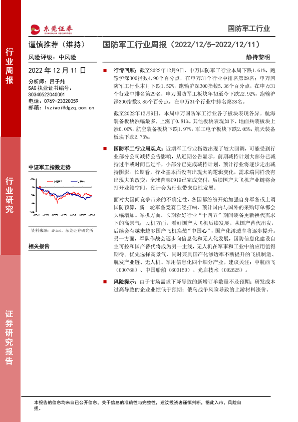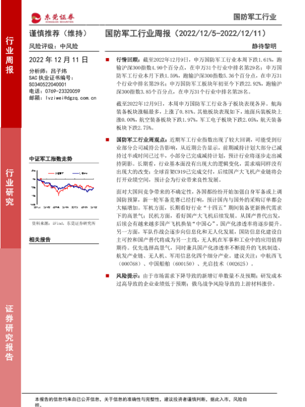 【东莞证券】【20221211】20221211-东莞证券-国防军工行业周报:静待黎明-11页