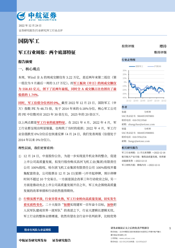 【中航证券】【20221224】军工行业周报:两个底部特征-68页