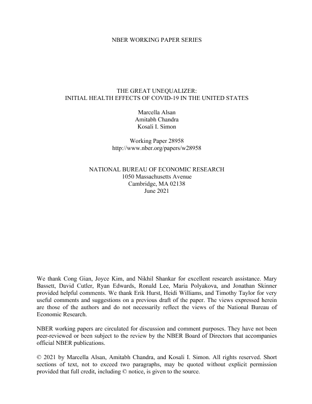 【National Bureau of Economic Research (NBER)】【202106】The Great Unequalizer Initial Health Effects of COVID-19 in the United States-29页