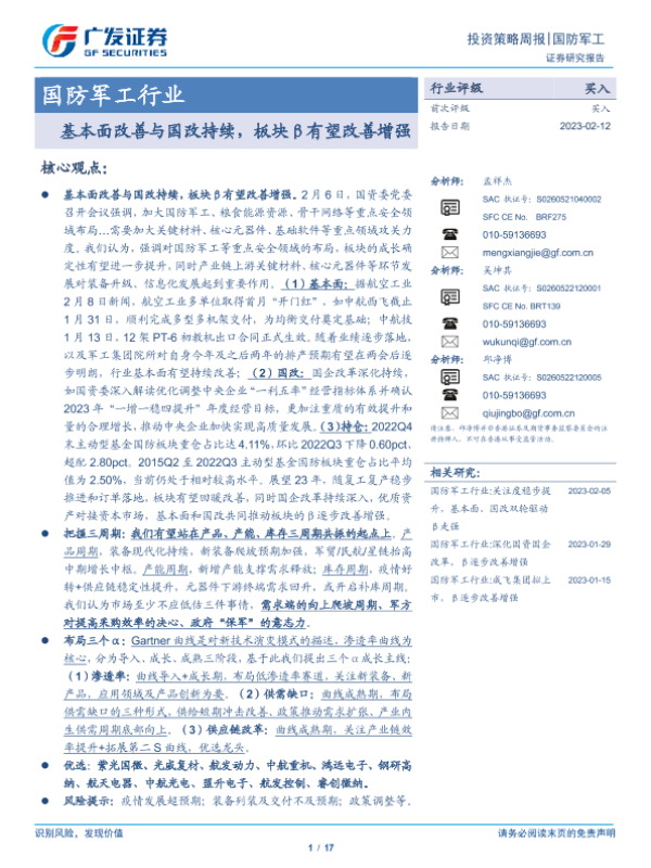 【广发证券】【20230212】国防军工行业:基本面改善与国改持续,板块β有望改善增强-17页