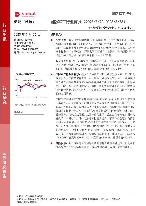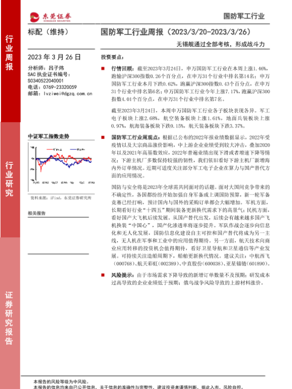 【东莞证券】【20230326】20230326-东莞证券-国防军工行业周报:无锡舰通过全部考核,形成战斗力-10页