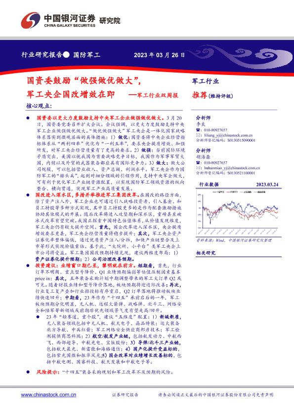 【银河证券】【20230326】军工行业双周报:国资委鼓励“做强做优做大”,军工央企国改增效在即-13页