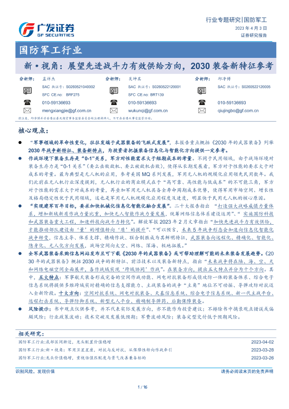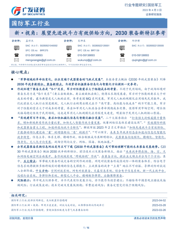 【广发证券】【20230403】新·视角:展望先进战斗力有效供给方向,2030装备新特征参考-16页