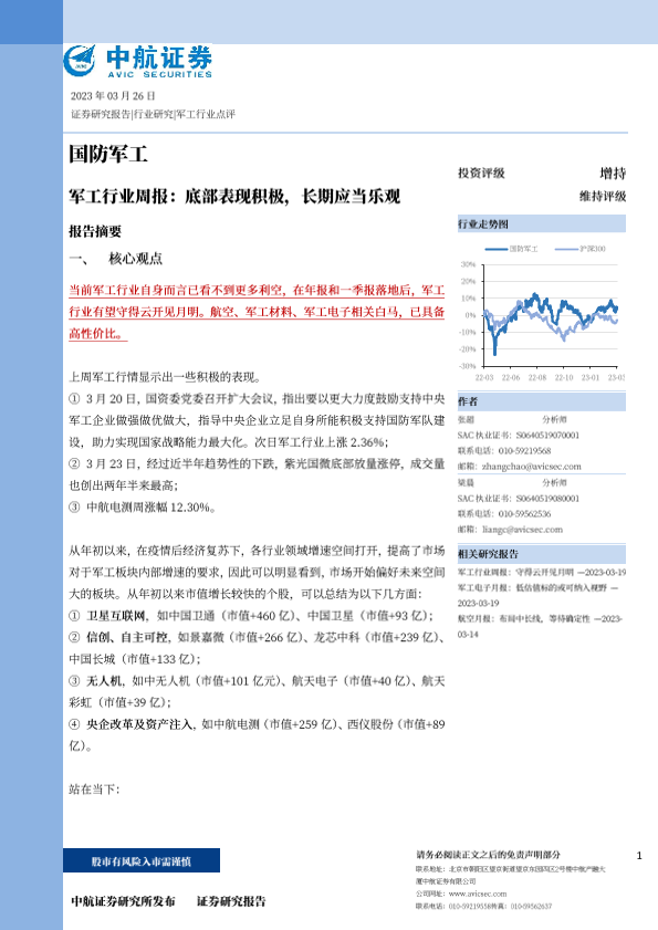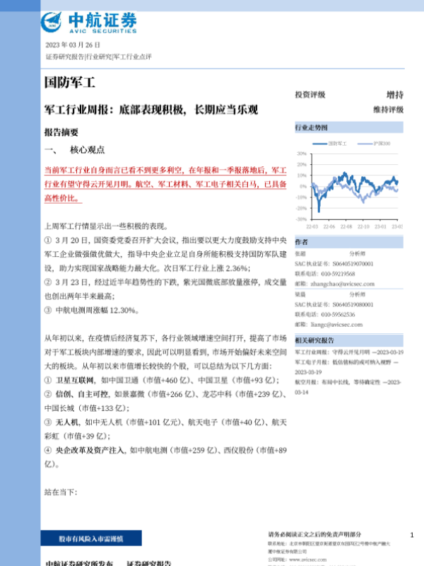 【中航证券】【20230326】20230326-中航证券-军工行业周报:底部表现积极,长期应当乐观-36页