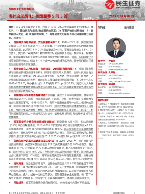 【民生证券】【20230407】国防军工行业专题报告:海外启示录1:美国军费5问5答-20页