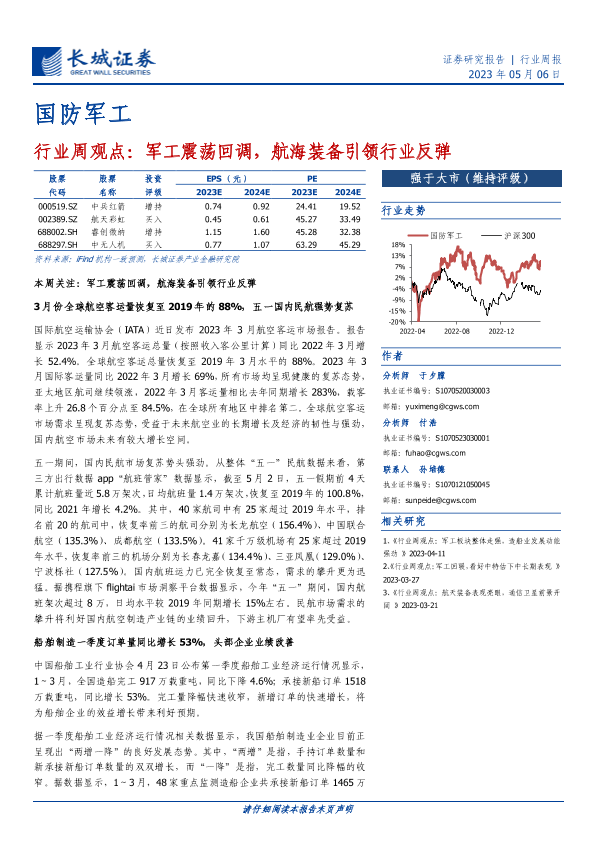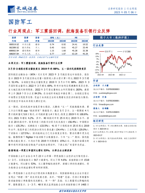 【长城证券】【20230506】国防军工行业周观点:军工震荡回调,航海装备引领行业反弹-12页