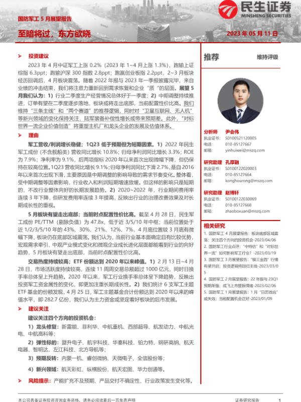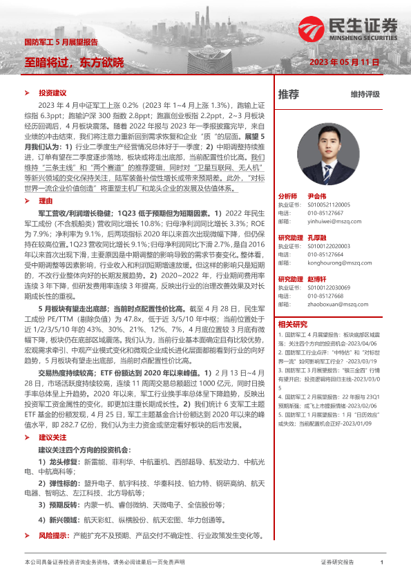 【民生证券】【20230511】国防军工5月展望报告:至暗将过,东方欲晓-16页