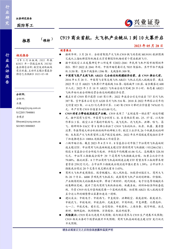 【兴业证券】【20230528】C919商业首航,大飞机产业链从1到10大幕开启-10页