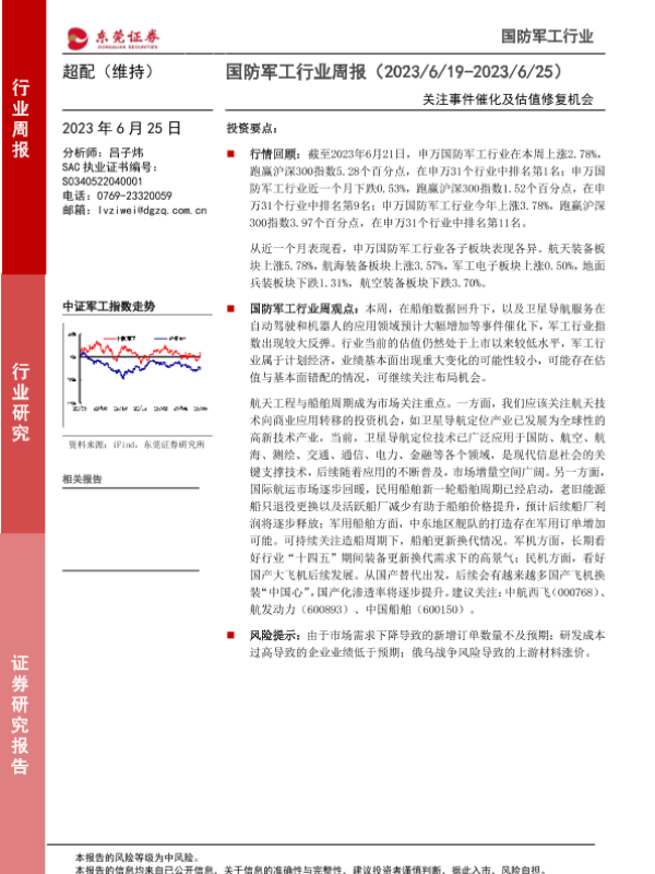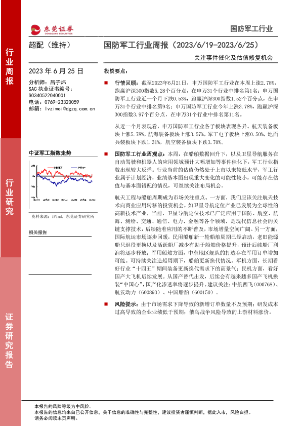 【东莞证券】【20230625】20230625-东莞证券-国防军工行业周报:关注事件催化及估值修复机会-11页