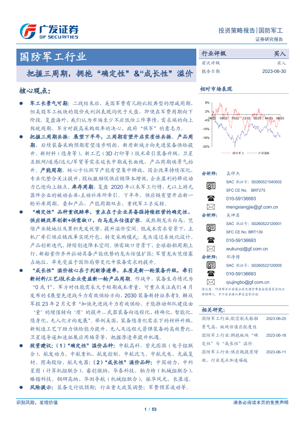 【广发证券】【20230630】20230630-广发证券-国防军工行业投资策略报告:把握三周期,拥抱“确定性”&“成长性”溢价-53页