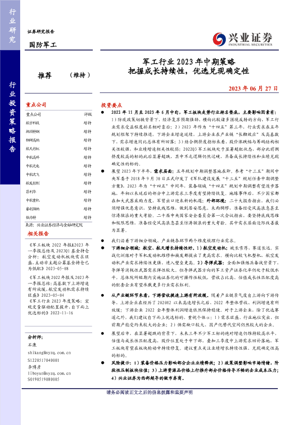 【兴业证券】【20230627】军工行业2023年中期策略:把握成长持续性,优选兑现确定性-67页
